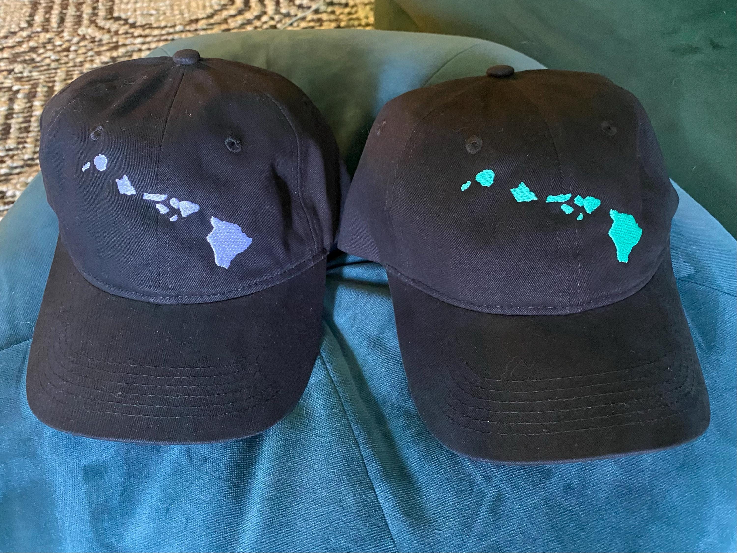 Hawaiian Islands design embroidered with our Snow White thread color on a Red high quality soft cotton dad hat with an adjustable strap. Customize your own by choosing your own embroidery and hat colors!